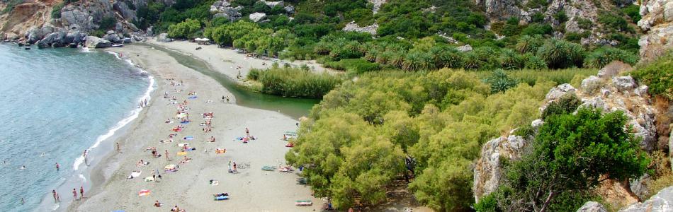 This is the most famous beach of South Rethymno and one of the most beautiful of Crete. The rare palm forest that embraces the banks of Kourtaliotis river and the sandy beaches that is in front of the crystal clear sea, give a magical atmosphere to the place. The palm forest was partially destroyed by fire, but young palm trees have begun to sprout and thus giving Preveli its natural beauty back. The beach is organized so you can find umbrellas and sunbeds as well as canoes to enjoy fun on water. A walk along the banks of the river is equally rewarding as you can walk till the point the rocks form a border that terminates the path through the gorge. You can access the beach by car, following the road to Plakias. Shortly after Lefkogia, you follow the signs to Lake Preveli, until you find yourself in a large parking lot with a path that will lead you to the beach. You will have the opportunity to enjoy the magnificent view from the top, but it will take you about 15-20 minutes to arrive at the beach. Alternatively follow the dirt road until Amoudi and then take the short and easy path to Preveli. You can also reach the beach by boat from Agia Galini or Plakias.
